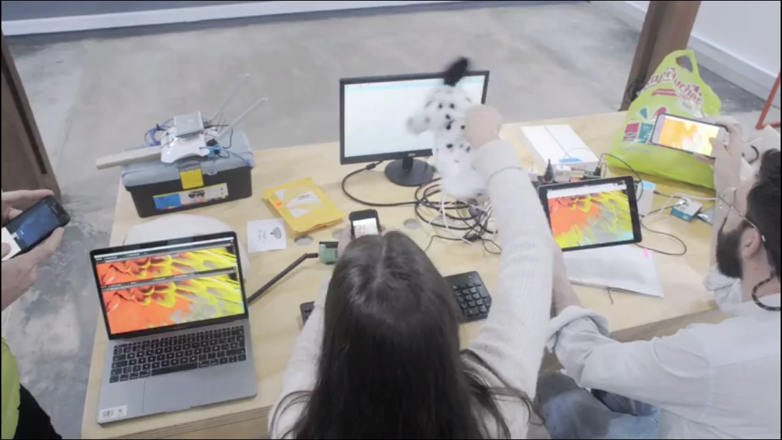 A stuffed puppy was coded to perceive affection. When left alone, it plays sad balads, the more you play with it, it plays more danceable music.